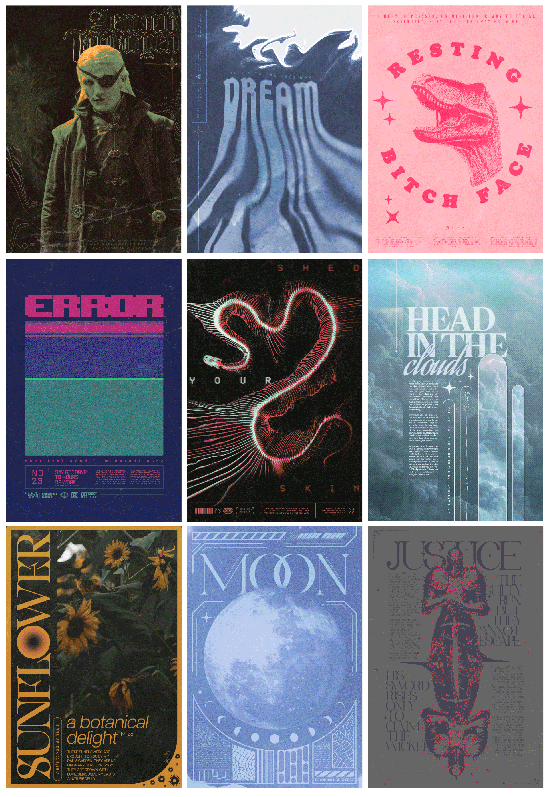It may sound silly, but it's scary to open up a blank canvas and embrace the mentality of *I have no absolutely no idea what I'm doing.* I find there is no greater pressure when it comes to design. This process pushed me grow and learn to unleash my creativity skillfully and without limits. At first, I found the thought alone of embarking on this challenge very daunting, but as I knocked out poster after poster, I found it to be something I very much looked forward to. This project reignited my love for design and was a lovely reminder of why I fell in love with it in the first place. The experience felt like visual journaling, capturing little snapshots of how I perceive the world. Each poster became an opportunity to learn, as I committed to mastering at least one new technique with every piece.